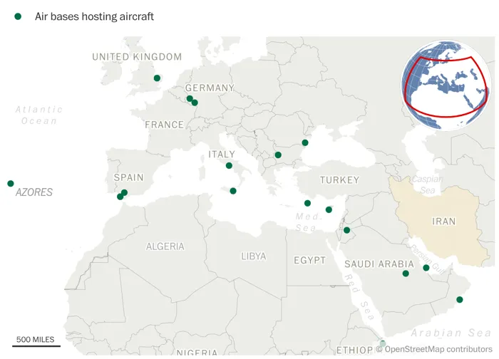 أظهرت بيانات التتبع أن أكثر من نصف الطائرات الأمريكية التي جرى نشرها حديثًا هبطت في قواعد بأوروبا، وليس في الخليج، في خطوة تهدف إلى إبقاء هذه الطائرات خارج مدى معظم الصواريخ الإيرانية، إضافة إلى تقليل فرص استهدافها المباشر، وفق محللين في شؤون إيران.