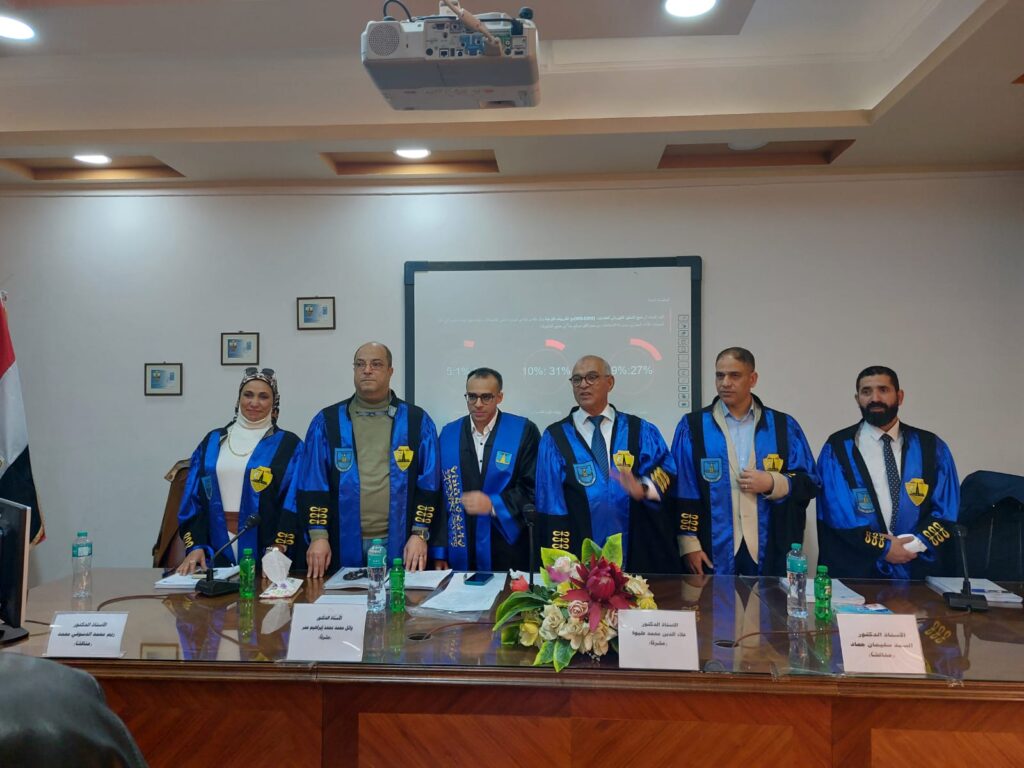 وتشكلت لجنة الحكم والمناقشة على الرسالة العلمية من: الأستاذ الدكتور علاء الدين محمد محمد عليوة، أستاذ الصحة الرياضية بكلية علوم الرياضة جامعة الإسكندرية، والأستاذ الدكتور وائل محمد محمد إبراهيم عمر، أستاذ الإصابات الرياضية والتأهيل ورئيس قسم العلوم الحيوية والصحية الرياضية بجامعة الإسكندرية، والأستاذ الدكتور سعيد محمد غنيمي، أستاذ تدريب الجمباز بكلية علوم الرياضة للبنين بجامعة الإسكندرية، الدكتور السيد سليمان حماد، أستاذ الصحة الرياضية بجامعة الإسكندرية، الدكتورة ريم الدسوقي، أستاذ التدريب الرياضي بكلية علوم الرياضة جامعة المنصورة.