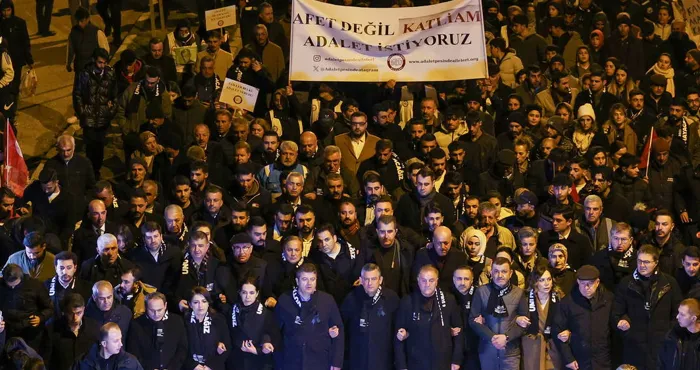 وتجمّع آلاف الأشخاص أمام مبنى محافظة أديامان، وساروا حاملين زهور القرنفل والأعلام التركية. وخلال المسيرة، هتف المواطنون العديد من الشعارات، مثل: “هل هناك أحد يسمعني؟” و”لا نسيان، ولا غفران”، حاملين لافتات كُتب عليها: “ليست كارثة، بل مجزرة، نطالب بالعدالة”.