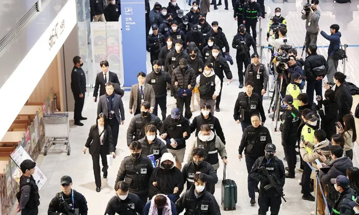وجاء هذا التطور بعد يوم واحد من تقدم الشرطة بطلبات اعتقال جماعية بحق المشتبه بهم، الذين كانوا محتجزين في كمبوديا قبل إعادتهم إلى كوريا الجنوبية الجمعة الماضي على متن طائرة مستأجرة، في عملية وُصفت بأنها الأكبر من نوعها لإعادة مشتبه بهم جنائيين من دولة واحدة.